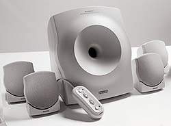 Новая качественная система MMS205 вполне устроит любителей 3D-звука. Четыре крошечных (7,5 см) сателлита и направленный НЧ-динамик дают четкие «верхи» и мощные «низы». Маленькие колонки можно легко установить таким образом, что появляется замечательный стереоэффект. Однако почти все недорогие аудиосистемы имеют какой-либо недостаток. У этой, например, наблюдается отчетливый провал в АЧХ на средних частотах. Музыка и аудиоэффекты у MMS205 звучали значительно слабее, чем дает Altec Lansing четырехлетней давности, зато, правда, они получались более четкими.