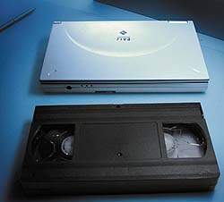Несмотря на небольшие размеры (210х132х25 мм) и массу (825 г), он работает под управлением Windows 98 SE. У него процессор Geode (Media GX) фирмы National Semiconductor c частотой 233 МГц, оперативная память 64 Мбайт (максимум 96 Мбайт), 6-Гбайт жесткий диск компании Fujitsu. Устройство оборудовано сенсорной панелью и клавиатурой, 6,8-дюймовым ЖК-дисплеем с активной матрицей (разрешение 800х600 точек, 65 536 цветов). В комплекте с Fiva поставляются внешний блок питания, аккумулятор стандартной емкости, а также лицензионный пакет Windows 98 SE. Ноутбук имеет USB-, ИК- порты и разъем для PC-карт типа II, но дополнительно можно приобрести размножитель портов с разъемами USB, PS/2, последовательного и параллельного интерфейсов, портами для подключения внешнего монитора и флоппи-дисковода.