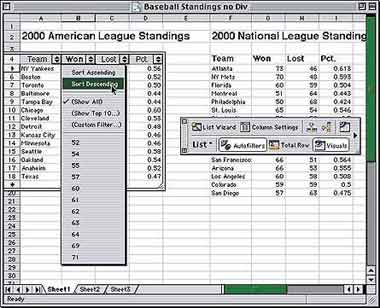 Новшества. Excel чаще всего используется для создания списков. (Вы знаете, о чем я толкую. Сколько раз вместо того, чтобы заниматься анализом полученной предприятием прибыли, вы составляли списки рабочих телефонов сотрудников?) Microsoft мудро решила облегчить жизнь пользователям и снабдила Excel инструментами List Wizard («Мастер списков») и List Manager («Менеджер списков»). List Wizard помогает создавать списки, List Manager позволяет выполнять сортировку списка по столбцам и как угодно фильтровать содержащиеся в нем данные.