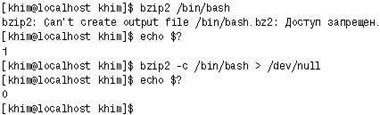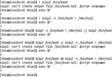 | Рис. 4. Программа bzip2 в соответствии с общепринятым соглашением возвращает 0 при успешном завершении операции и 1 при неудачном |