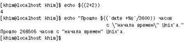 Вместо обратных апострофов можно было использовать и конструкцию $(...). А очень похожая на нее конструкция $((...)) позволяет подставить в командную строку значение арифметического выражения (см. рис. 3; команда date с параметром +%s выдает текущую дату и время как число секунд, прошедших с 1 января 1970 г. до настоящего момента).