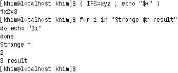 Для передачи всех параметров в другую программу в bash предусмотрены две специальные переменные: $* и $@. Переменная $* содержит список параметров; разделителем служит первый из символов, хранящихся в переменной окружения IFS (это список разделителей слов, используемый в основном командой read). А вот $@ магическим образом раскрывается в $# параметров (если используются кавычки, то результат бывает забавен — см. рис. 9). Так как перебор параметров скрипта — весьма частая операция, то in ?$@? в цикле for можно опустить, как это сделано в листинге 6.