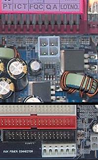 Помимо основного 20-контактного разъема питания и разъемов для подключения периферии процессору Pentium 4 потребуются еще два дополнительных разъема, один из которых обеспечивает подачу стабилизированного напряжения +12 В непосредственно на кристалл, а второй распределяет дополнительные +3,3 и +5 В для шин данных и интерфейсов внешних устройств.