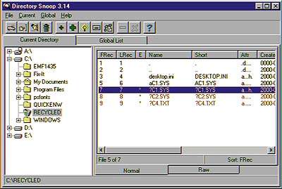 Программы восстановления файлов также входят в состав наборов утилит наподобие Norton Utilities компании Symantec. (В Norton Utilities надо запустить Мастер восстановления файлов — UnErase Wizard.) Если у вас нет ни одного из таких пакетов, то рекомендую условно-бесплатную программу Directory Snoop компании Briggs Softworks. Списать ее можно на сайте FileWorld или же на Web-узле производителя: www.briggsoft.com.
