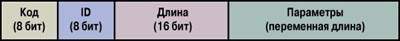 Хотя согласуемые параметры на каждом уровне, естественно, свои, формат их представления в конфигурационных пакетах всегда один и тот же: описание каждого параметра (или группы взаимосвязанных параметров) состоит из двух однобайтовых полей — кода и длины, за которыми следует поле значения (значений) переменной длины (рис. 4). Число, заносимое в поле длины, соответствует суммарному размеру полей описания параметра, поэтому поле значений может занимать от 0 до 253 (255-2) байт. Его содержимое целиком зависит от параметра.