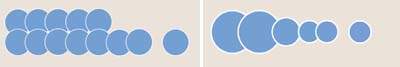 | Слева — схема печати каплями одного размера, справа — варьируемого. Видно, что в последнем случае достаточно одного прохода, хотя в первом надо два. |