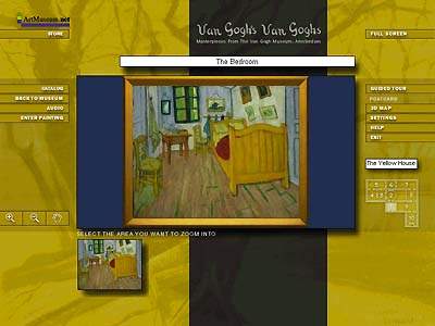 Если бы Сеть появилась сто лет назад, Ван Гог легко сколотил бы себе состояние на Internet-аукционе EBay. Увы, ее не было, и художник умер в нищете, но сейчас он сможет обогатить любого из вас на виртуальной выставке своих картин. Для двух из них построены трехмерные представления, позволяющие «войти внутрь». Экскурсия по выставке, подготовленная корпорацией Intel и Музеем Ван Гога в Амстердаме, включает сопровождаемый лекцией проход по залам музея с возможностью «приближаться» к отдельным картинам и подробно, вплоть до отдельных мазков, их рассматривать. Для всего этого вам потребуется программа объемом 12 Мбайт и — желательно — скоростное соединение, поскольку сервер, на котором хранятся картины, находится почему-то в Исландии, в Рейкьявике. При обычном соединении можно посетить выставку Энди Уорхола (не рекомендуется детям без разрешения родителей) и потрясающую ретроспективу искусства и культуры XX века из музея Уитни.