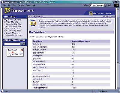 | Служба Freeservers помогает анализировать трафик Web-страниц и представляет информацию в виде легко читающихся отчетов |
