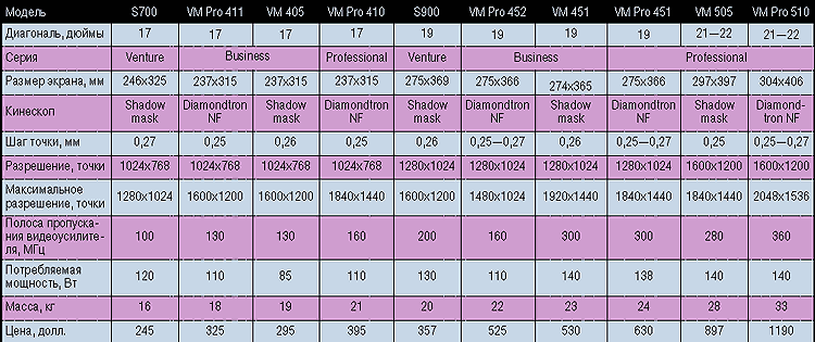 Таблица 1. Технические характеристики ЭЛТ-мониторов iiYAMA