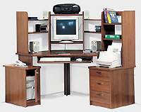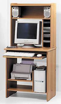 Подобная «универсальная стойка для компьютерного оборудования» включает в себя небольшой стол, недорогую подставку для монитора, «скворечник» для системного блока и полочку для принтера. Поместить на нее еще что-нибудь, кроме ПК, практически невозможно. Защитники подобного мебельного шедевра могут выдвинуть в его защиту такие аргументы, как невысокая цена и малые размеры. Первый довод обычно приводят продавцы, а второй — работодатели, но ведь ни тем, ни другим не придется сидеть за ПК долгими часами.