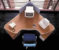 Итак, обобщив все высказанные соображения, в качестве практически идеального рабочего места можно представить себе некую угловую структуру с передним краем в форме лекала. Общая занимаемая ею площадь оптимальна, если ее установить в углу, а «мертвое», недоступное пространство занять монитором. Его сглаженный полукруглый передний край образует дугу вокруг пользователя, обеспечивая оптимальную зону доступа.