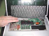 Кроме того, наращивать память стало намного проще по сравнению с предшественником — компьютером PowerBook G3. Для этого нужно просто снять клавиатуру и без всякой отвертки установить стандартный модуль SDRAM объемом 128, 256 или 512 Мбайт. Именно так мы и сделали с дополнительным 128-Мбайт модулем (рис. 1).