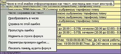 Подобные меню появляются не только после действий пользователя, но и предвосхищают их. Так, если в таблице Excel в ячейке, имеющей текстовый формат, находится число, то будет предложено перевести ячейку в числовой формат (рис.2).