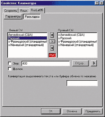 | Рис. 2. Настройка переключения раскладок в RusLat95 |