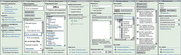 Рис.1. Все доступные в Word 2002 типы области задач