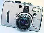 Эта компактная 3,3-мегапиксельная камера обладает потрясающими возможностями. Обращает на себя внимание богатство режимов экспонирования, доступных одним поворотом переключателя: программный автоматический (выбор экспозиционной пары делается фотографом), приоритет диафрагмы, приоритет выдержки, ручной, сюжетные программы, а также полностью автоматический режим. Имеется не очень нужная для профессионала, но приятная для любителя возможность снять коротенький видеоклип (до 30 с). Заслуживает упоминания необычная конструкция: вращающийся ЖК-дисплей с защитным покрытием позволяет работать с камерой практически из любого положения, а в закрытом состоянии можно не бояться за целостность экрана.
