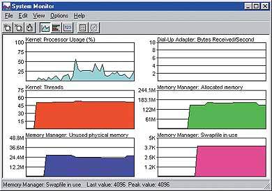 Cлужебную программу Windows 98 под названием Системный монитор можно рассматривать как своего рода приборную панель ПК. Подобно панели приборов в автомобиле, он оперативно оповещает о состоянии машины и может своевременно сообщить о том, что под кожухом ПК назревает какая-либо неприятность.