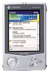 Типичное устройство под управлением Windows CE. Угловатые очертания вызывают сравнение с кирпичом, но на самом деле Cassiopeia хорошо ложится в руку, обладает удобным управлением и экраном с сочными красками.