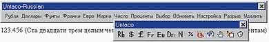 Программа Untaco (рис. 3) предназначена для того, чтобы вставить в документ текстовые расшифровки чисел с возможностью их последующего автоматического обновления при изменении тех чисел, для которых были сделаны упомянутые расшифровки (в конечном тексте будут присутствовать и само число, и его расшифровка). В исходном числе допускается наличие разделителей разрядов. Результат расшифровки может выдаваться на русском и украинском языках в именительном или дательном падеже, а также на английском языке.