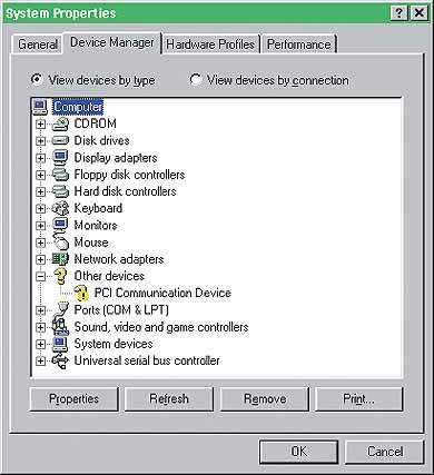 Если повезет, то программа установки Windows распознает и правильно установит драйверы для всех компонентов нового ПК. Чтобы проверить, так ли это, нажмите кнопку «Пуск», выберите пункты «Настройки?Панель управления» (Settings?Control Panel), щелкните мышью на значке «Система» (System) и отметьте закладку «Устройства» (Device Manager)(А). Если в списке на закладке указано все ваше оборудование и вы не увидите ни одного желтого восклицательного знака, то, значит, система Windows распознала устройства. Если же восклицательные знаки появятся, то щелкните правой кнопкой мыши по пункту, вызвавшему у системы вопросы, выберите пункт «Свойства» (Properties) и следуйте указаниям системы поиска неисправностей, имеющейся в Windows.