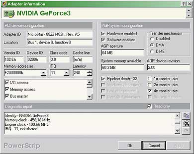 | Все честно... Частоты графического ядра и ОЗУ каждой платы проверялись с помощью дотошной утилиты PowerStrip (версия 3.02 build 201) разработанной компанией Entech Taiwan (подробнее: www.entechtaiwan.com) |