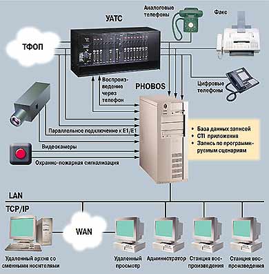Итак, Phobos — это многоканальная система непрерывной автоматической регистрации и обработки сигналов, передаваемых по проводным линиям. Источниками сигналов могут служить как аналоговые телефонные линии — городские (телефонная сеть общего пользования, ТФОП) и/или внутренние абонентские линии учрежденческих АТС (УАТС), так и микрофоны, линейные аудиовыходы тех или иных устройств: раций, магнитофонов, радиоприемников. Ими могут быть также цифровые магистральные каналы E1, T1, Frame Relay, Ethernet либо видеокамеры, устройства телеметрии, различные датчики.