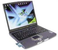 Непрерывный визуальный контроль над «дорогой» обеспечивал экран на активной матрице (диагональ 14,1 дюйма с максимальным разрешением 1024x768 точек при 32-разрядной глубине цвета). Он получал сигнал с интегрированного графического адаптера Intel 815EM, использующего 4 Мбайт собственной видеопамяти (расширяемой до 11 Мбайт). Четкость изображения, равно как и контрастность картинки, не вызвали у нас нареканий. Вот только угол обзора по горизонтали хотелось бы видеть чуть большим.