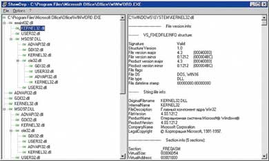 Загрузить бесплатную программу ShowDep, которая работает как в Windows 9x, так и в Windows 2000, можно с сайта http://perecod.chat.ru/showdep.rar. Существует и более новая версия этой утилиты, распространяемая как Shareware, ее можно найти на Web-узле http://www.showdep.com, но имеющиеся в ней дополнительные функции заинтересуют, скорее всего, лишь программистов.