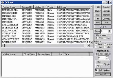 Программу CCTask можно загрузить с сайта www.cybercreek.com и с адреса http://perecod.chat.ru/cctask.rar, а Process Viewer — с сайта www.teamcti.com и с адреса http://perecod.chat.ru/prcview.rar.