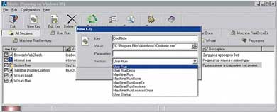 - пути к которым указаны в Системном реестре, в подразделах Run, RunOnce, RunServices, RunServicesOnce раздела HKLMSoftwareMicrosoft WindowsCurrentVersion, а также в одноименных подразделах раздела HKCUSoftwareMicrosoft WindowsCurrentVersion;