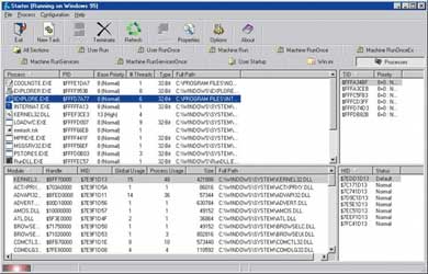 В Starter включена функция просмотра не только списка программ, автоматически запускаемых при загрузке Windows, но и перечня всех запущенных программ, а также и работы с ними, напоминающая встроенный Process Viewer (рис. 11). Кроме того, Starter показывает в своем окне все библиотеки, используемые тем или иным процессом.
