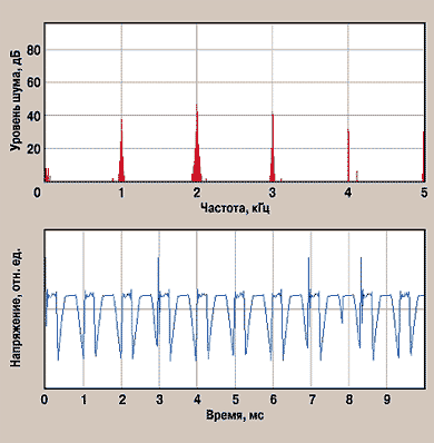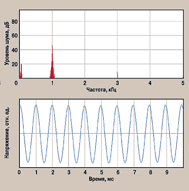 Спектр сигнала и осциллограмма при воспроизведении этого WAV-файла показаны на рис. 2. А вот как выглядит тот же сигнал на плате Creative SB Audigy (рис. 3).