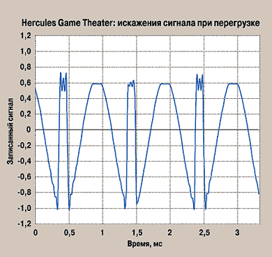 | Рис. 1. Искажения сигнала Game Theater при перегрузке |
