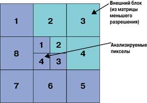 | Рис.1. Пример ячейки. Цифры определяют порядок следования пикселов и блоков в алгоритмах |