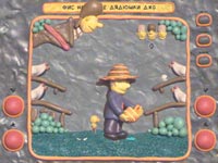 Весь этот сонм развлечений имеет оригинальное и стильное обрамление. Каждый элемент продукта, от бровей главного героя до последней пуговицы на халате лохотронщицы, вылеплен из пластилина. Вот в таком мире вас и встречает ларечник Рудик с манерами профессионального зазывалы, сменщики которого — дед, беспрестанно ковыряющий в ушах, и бабка, хранящая свой «любимый брютерброт с колбаской» на прилавке среди игрового ассортимента и рядом с бутылкой самогона. И обхождение, и говор явно выдают в этой троице гастарбайтеров, перебравшихся с периферии СНГ в более «хлебный» регион на заработки. В захламленном ларьке навалены, развешены и выставлены все 53 способа сравнительно честного отъема денег у граждан, то бишь у лохов. Уже один «вид» ларечных игрушек явно говорит об их «китайском» происхождении — все они неладно скроены, некрепко сшиты. Однако же народ берет — не сердито, но дешево!