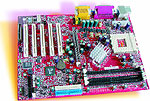 А ведь очень похоже, что именно nForce предстоит в скором будущем решать задачу смены поколений. К этому выводу приводит знакомство с «новобранцем», прошедшим выучку в конструкторских бюро и цехах компании Micro-Star International, благо поводов для такой оценки модель K7N420 Pro дает предостаточно. Плата, предназначенная для процессоров семейства Athlon/ Duron (разъем Soket A), поддерживает все типы ЦП AMD и работает на частоте системной шины 266 МГц. Максимально возможный объем ОЗУ типа DDR SDRAM (PC1600/ PC2100) с полосой пропускания 4,2 Гбайт/с при полностью заполненных трех банках памяти составляет 1,5 Гбайт. Дисковой подсистеме доступны интерфейс ATA/100 и арбитр шины. Шесть USB-портов позволят подсоединить необходимую периферию, не занимая прерываний параллельного и последовательных интерфейсов, а интегрированный контроллер 10/100 Base-T Ethernet/Fast Ethernet дает возможность подключить ПК к локальной сети организации и, значит, к Интернету. Кроме того, в распоряжении пользователя имеются пять гнезд PCI, разъем расширения CNR и порт AGP.