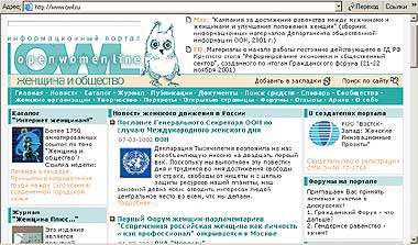 Информационный портал, созданный более шести лет назад и поддерживаемый общественной организацией «Восток—Запад: Женские инновационные проекты», — на сегодняшний день наиболее интересный и полный ресурс, адресованный женщинам. В нем содержится более 1700 аннотированных ссылок по теме «Интернет—женщинам!». Здесь можно найти полезные правовые документы, тексты книг и исследований, информацию о более чем 100 женских организациях России и ближнего зарубежья, портреты и «голоса» женщин (политиков, бизнесменов, активисток), форумы, архивы. Портал оказывает поддержку социально активным женщинам, работающим в самых разных сферах, содействует вовлечению их в международные программы (искусство, культура, образование, здоровье, спорт), помогает им в профессиональном становлении и налаживании деловых контактов внутри страны и за рубежом.
