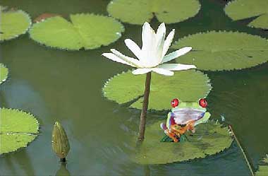 Лягушонок на рис. 1 изображен на однородном фоне (что оптимально для работы Magic Wand). Попробуем выделить его, а затем поместить на другой фон (рис. 2).