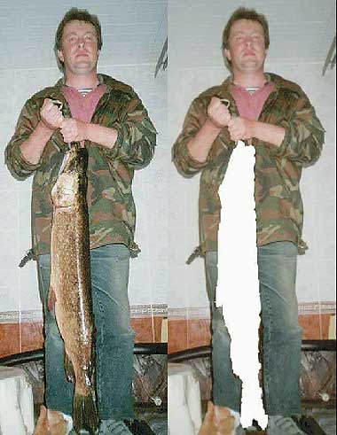 Рис. 5. Какой-то удачливый рыбак поймал большую щуку (слева) Рис. 6. Эту щуку я у него «позаимствовал» (справа) |