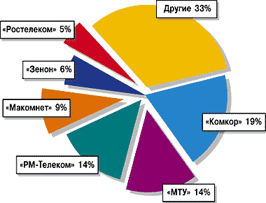 В результате лидером по подключению домашних сетей оказался «Комкор» - он подсоединил к своей волоконно-оптической сети до 19% от их общего числа. Это, как полагает Егор, вполне закономерный результат, учитывая разветвленную волоконно-оптическую сеть «Комкора», небольшие цены на установку канала, а также весьма демократичные цены на трафик. Второе и третье места, также вполне заслуженно, поделили «PM-Телеком» и «MTУ-Информ» («ПТТ-Телепорт»). Первая компания занимается организацией «последней мили» до клиента c помощью радиодоступа, вторая же использует ADSL-технологии и известна своим проектом «Точка Ру». Все эти технологии вполне оправдали себя в качестве недорогих решений для домашних сетей. На четвертом месте оказался «Макомнет», он, как и «Комкор», предоставляет волоконно-оптические каналы связи.