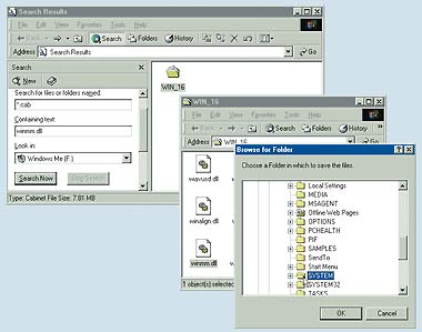 Прежде всего выясните, в каком из CAB-файлов на компакт-диске с дистрибутивом Windows хранится необходимый для восстановления DLL-файл. CAB-файл подобен ZIP-файлу — в нем содержится один или несколько сжатых файлов. Вот как можно справиться с такой проблемой в среде Windows и DOS.