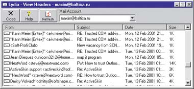 | Рис. 7. Просмотр заголовков писем в почтовом ящике |