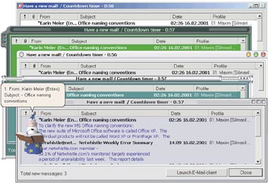 Задумывались ли вы когда-нибудь над тем, что означает флажок «Срочность», присутствующий в каждом электронном письме? На заре Интернета, когда отправление одного послания занимало ощутимый период времени, этот значок говорил о том, что эту корреспонденцию при прочих равных условиях следует посылать раньше других. Однако при высоких скоростях передачи данных очередность отошла на второй план, а на первый выдвинулось время ответа получателя. Так что сейчас флажок скорее призывает обратить внимание на данное письмо, подчеркивая его важность. Ведь быстро доставить послание, помеченное как срочное, — это еще полдела, нужно, чтобы абонент своевременно заглянул в свой почтовый ящик. А для этого необходима программа, способная регулярно проверять его содержимое и предупреждать о поступлении корреспонденции.