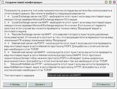 | Рис. 2. Свобода выбора — это не всегда просто. Окно мастера настройки профиля поможет правильно подобрать параметры для проверки вашего почтового ящика |