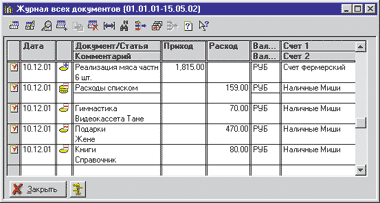 - Щелкнуть на пиктограмме "Список расходов", открывается документ.