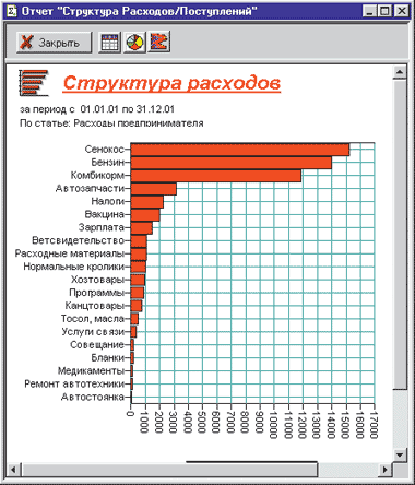 Так, наполнив «1С: Деньги 7.7» данными, мы получили мощный инструмент для анализа нашего финансового состояния. Теперь все расходы, в зависимости от поголовья, от сезона, с раскладкой по месяцам и дням, стали видны как на ладони. Или, как ныне модно выражаться в консалтинговых кругах, «предприятие стало прозрачным». Причем мы учитывали решительно все, и это был учет, действительно построенный нами так, как удобно именно нам, а не налоговой службе. В налоговую же мы по-прежнему сдавали бумажные талмуды, но цифры для нее тоже рассчитывались в программе «1C: Деньги».