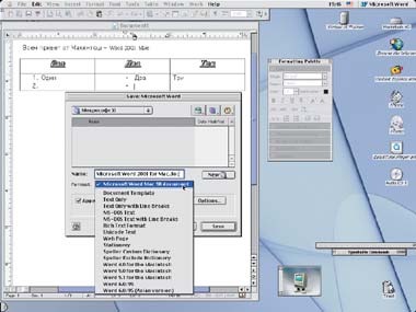 Текстовые процессоры. Простейший способ преодолеть «языковой» барьер между Macintosh и PC при обмене текстовыми документами — применять для их обработки приложения, использующие общие форматы файлов. Версии программы Microsoft Word для Mac OS и для PC сохраняют документы в одинаковых форматах, поэтому их можно без проблем открывать и редактировать на машине любой из этих платформ. Следует уточнить, что, во-первых, Word наиболее корректно «понимает» форматы файлов другой платформы тогда, когда версии программы для Mac OS и для Windows сопоставимы друг с другом. Так, попытка прочесть файл Word 2001 для Macintosh в Word 6.0 для Windows (не прибегая к помощи специальных приложений-конвертеров) заведомо обречена на неудачу. В то же время Word 2000 для Windows с легкостью справится с поставленной задачей. Во-вторых, полностью межплатформными можно назвать только Word 98 для Macintosh (и соответственно Word 97 для Windows) и старше. При использовании более младших версий этой программы на компьютерах разных платформ неизбежно придется прибегнуть к конвертерам.