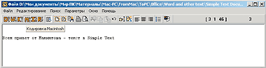 Вторая трудность заключается в выборе подходящей кодировки. Так, если тот же документ Simple Text попытаться открыть посредством входящего в комплект Windows текстового редактора «Блокнот», его содержимое из-за различий кодировок будет выводиться на экран и принтер некорректно. Впрочем, функцию выбора кодировки имеют множество программ, как коммерческих, так и условно-бесплатных и бесплатных (последние широко представлены в Интернете). Мы решили проблему с помощью приложения TextViewer Георгия Гуляева, поддерживающего, помимо прочих, и Mac-кодировку.