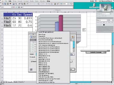 Редакторы электронных таблиц. Самый распространенный редактор электронных таблиц, Microsoft Excel, как и Word, работает с одинаковыми форматами файлов на Macintosh и PC. Поэтому документы, созданные с помощью этой программы (начиная с версии 98 для Macintosh и 97 для Windows), без проблем читаются компьютерами обеих платформ. При этом полностью сохраняются все данные, в том числе формулы, форматирование, внедренные графические объекты и макросы.