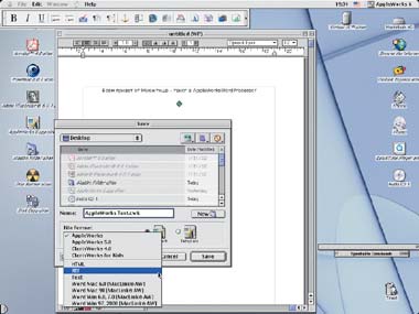 | Программа Word Processing офисного пакета AppleWorks сохраняет и открывает файлы в форматах, совместимых с Windows |